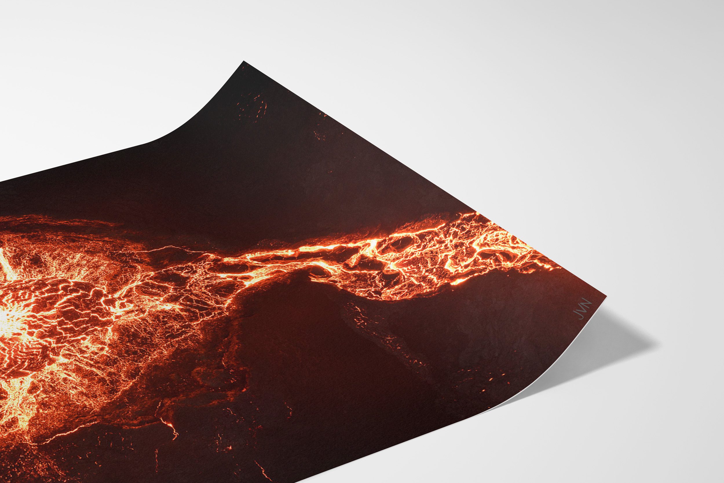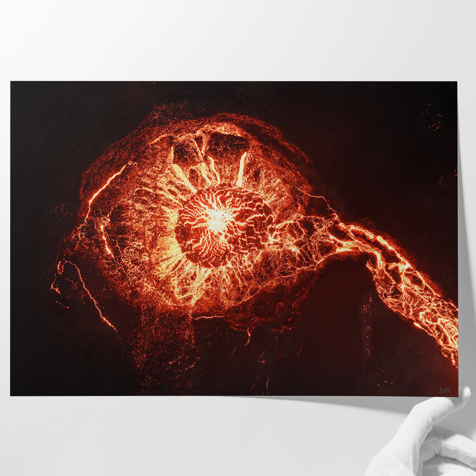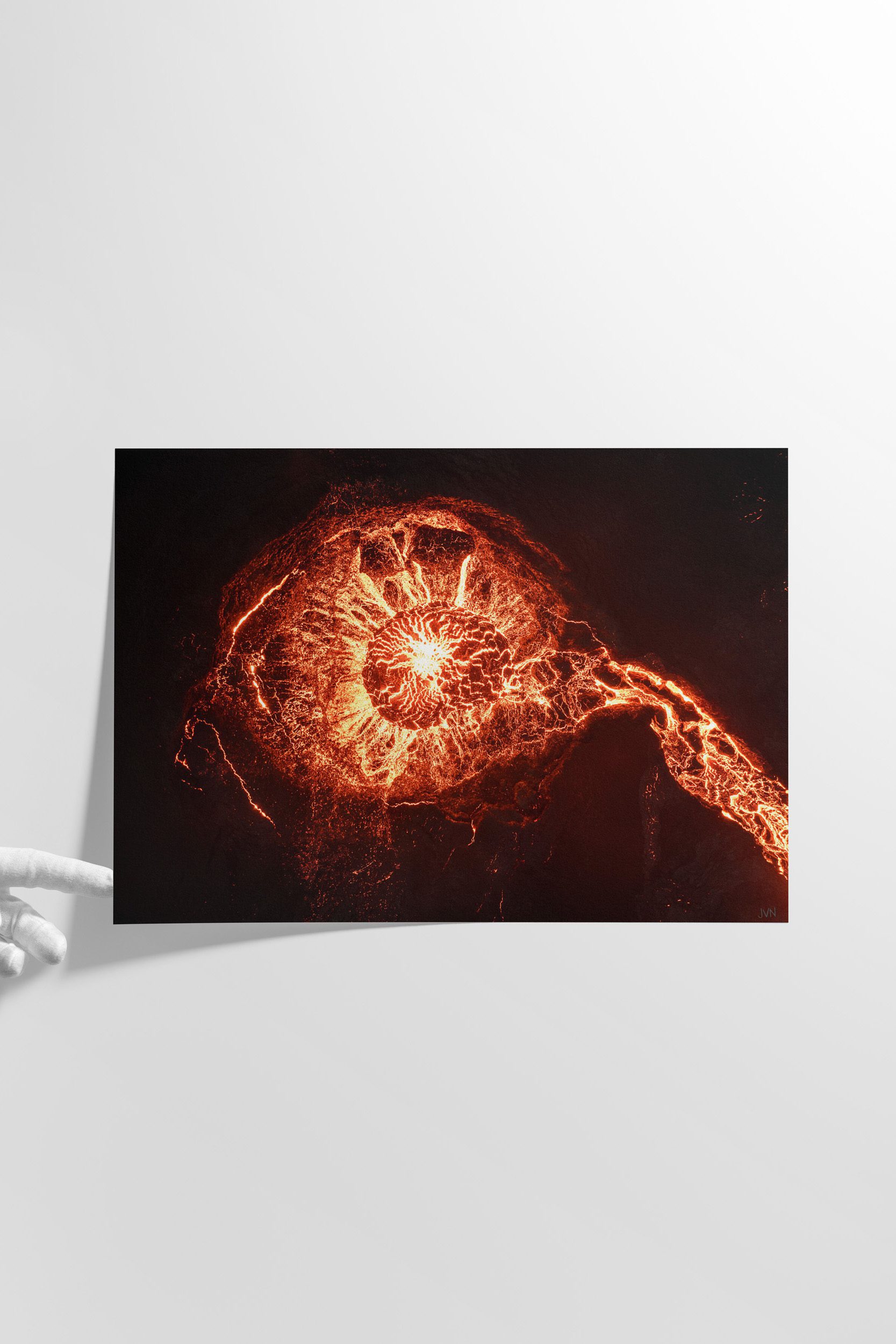Hraunauga (translation: ‘Lava Eye‘) is a top-down aerial photograph taken during the 2021 Fagradalsfjall eruption.