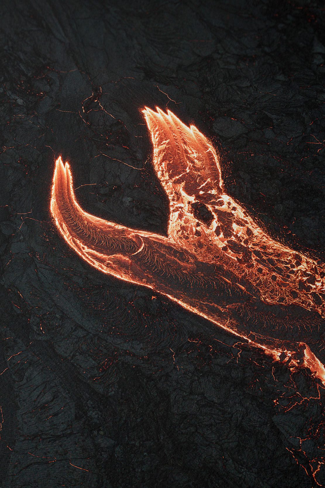 While photographing this eruption, I spent a lot of time trying to find patterns and shapes in the flowing lava. One of the most interesting ones was this fiery dragon’s head.