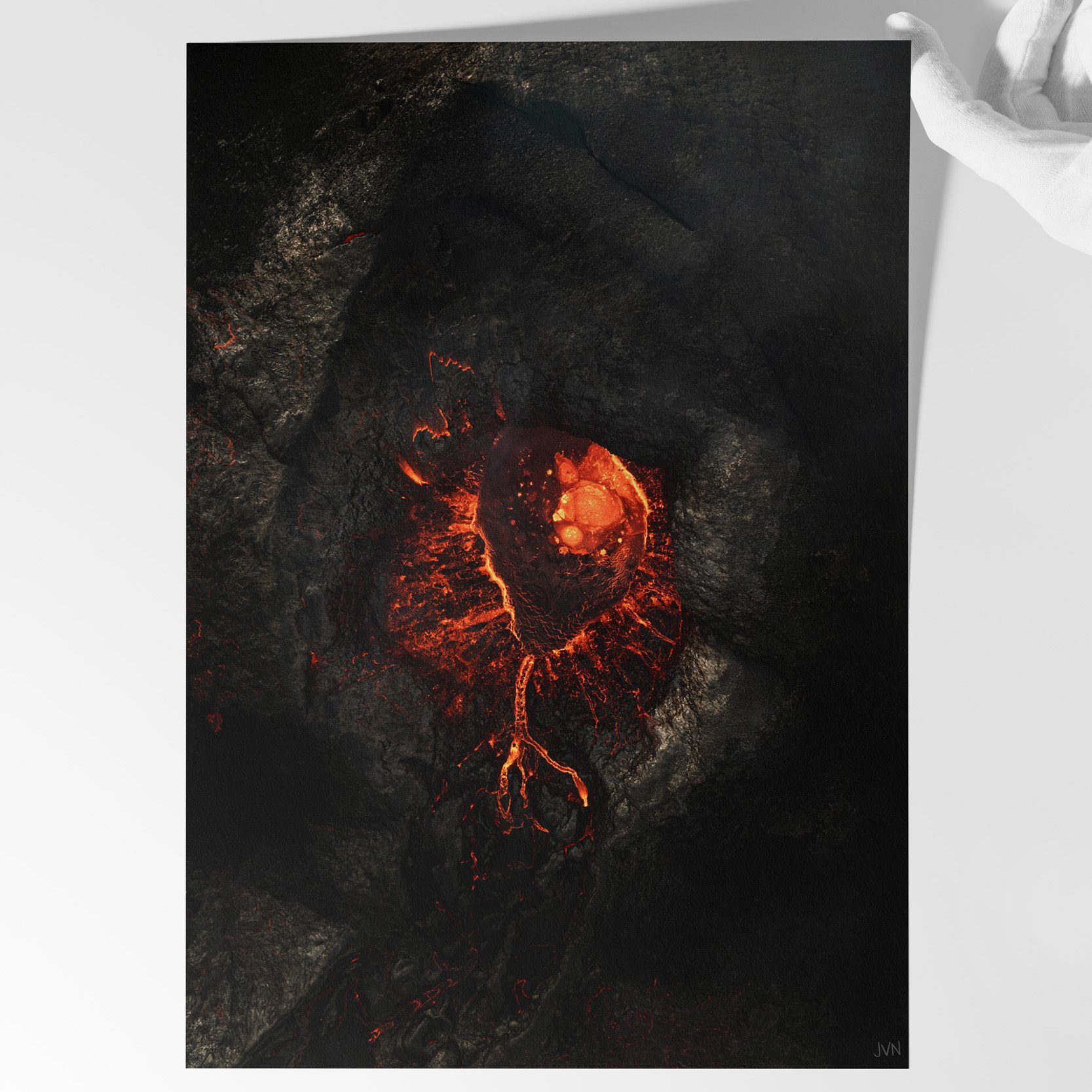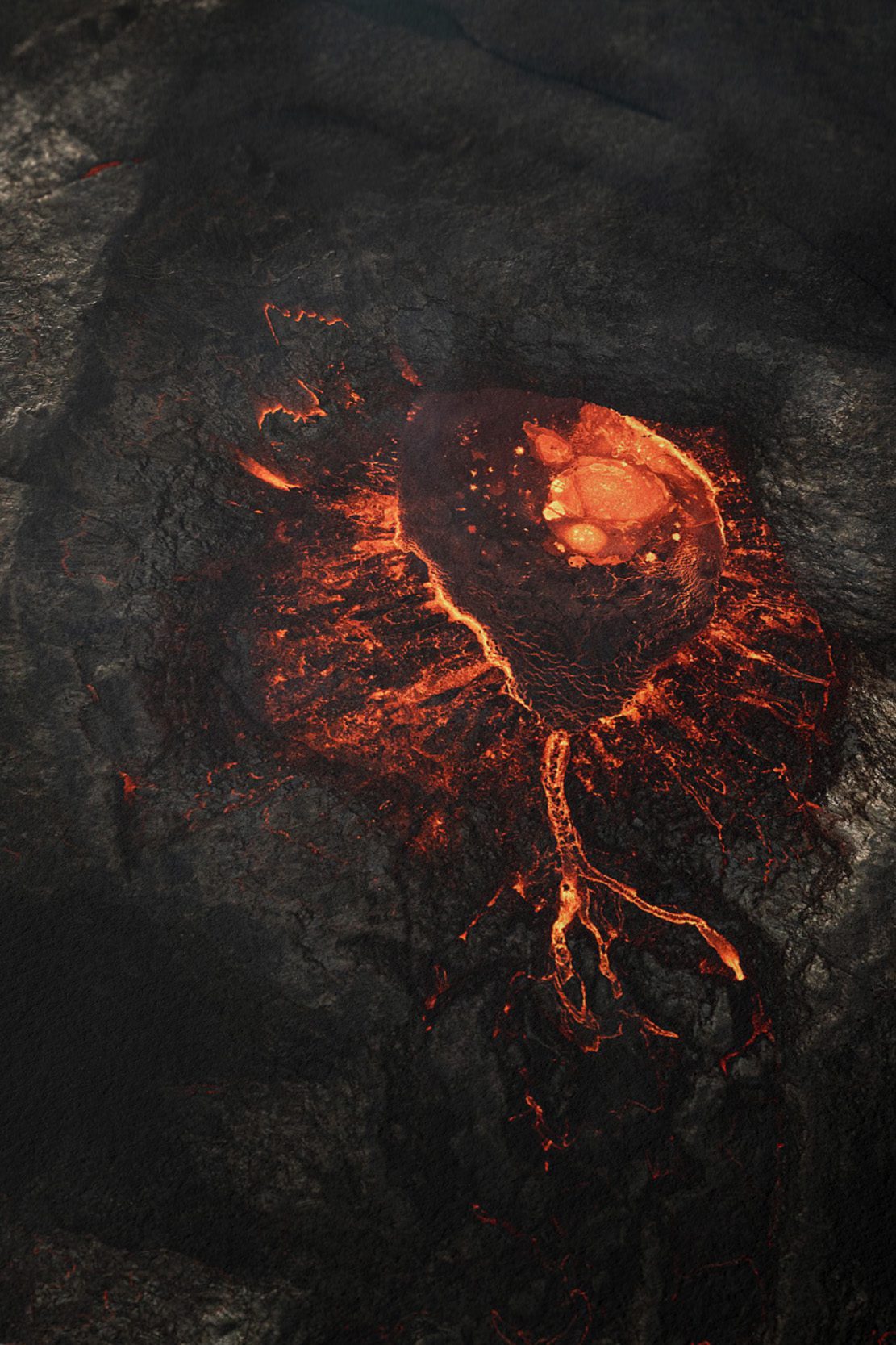 Kvikuhjarta (translation: ‘Magma Heart‘) is a top-down aerial photograph taken during the 2021 Fagradalsfjall eruption.
