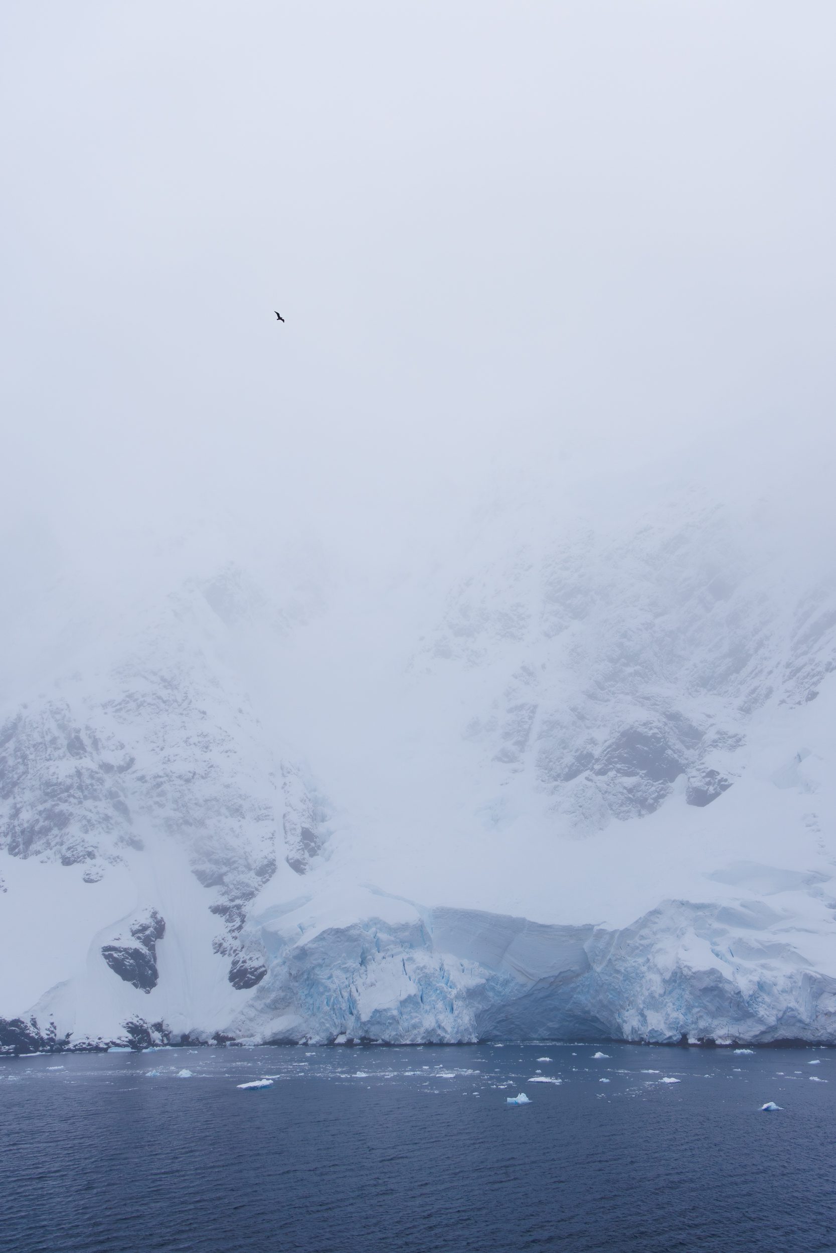 One aspect I struggled with throughout the Antarctica trip was how to create scale showing the immensity of the area. We hadn’t seen many birds up to that point but, fortunately, that morning we spotted the occasional bird flying past the mountains and glacier outlets. I attempted to use them to add an interesting element in my images, and add a sense of scale to my work. It’s moments like these that made me realise I made a smart move buying extra batteries for my cameras as there would almost never be a downtime from shooting – unless you were sleeping.
