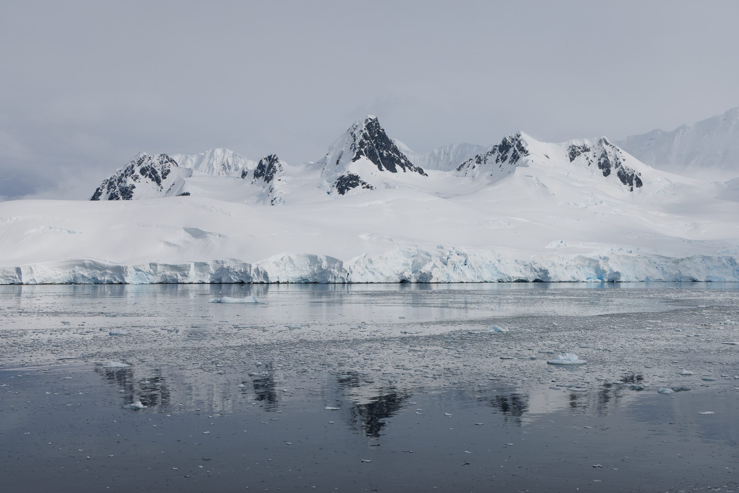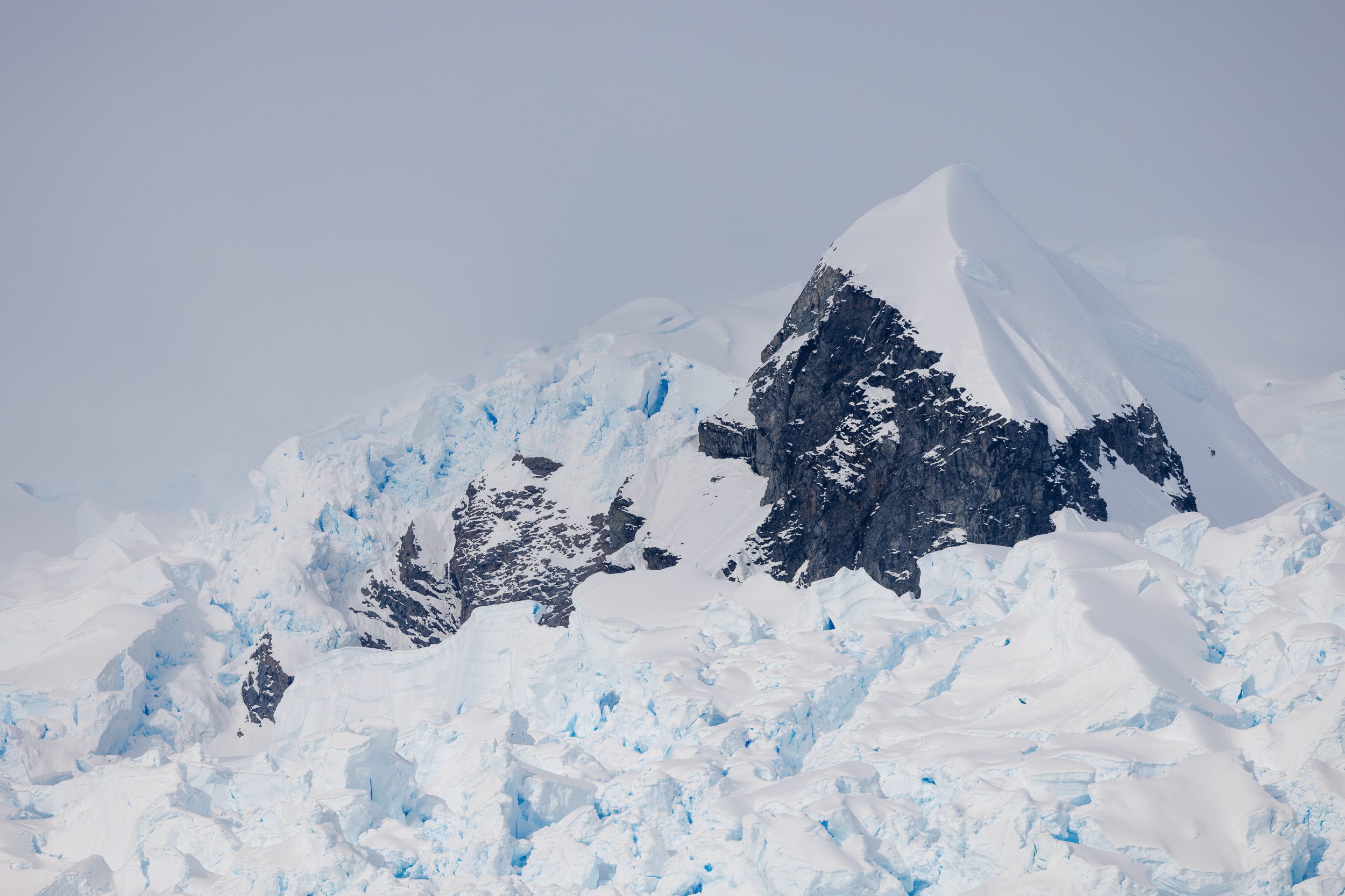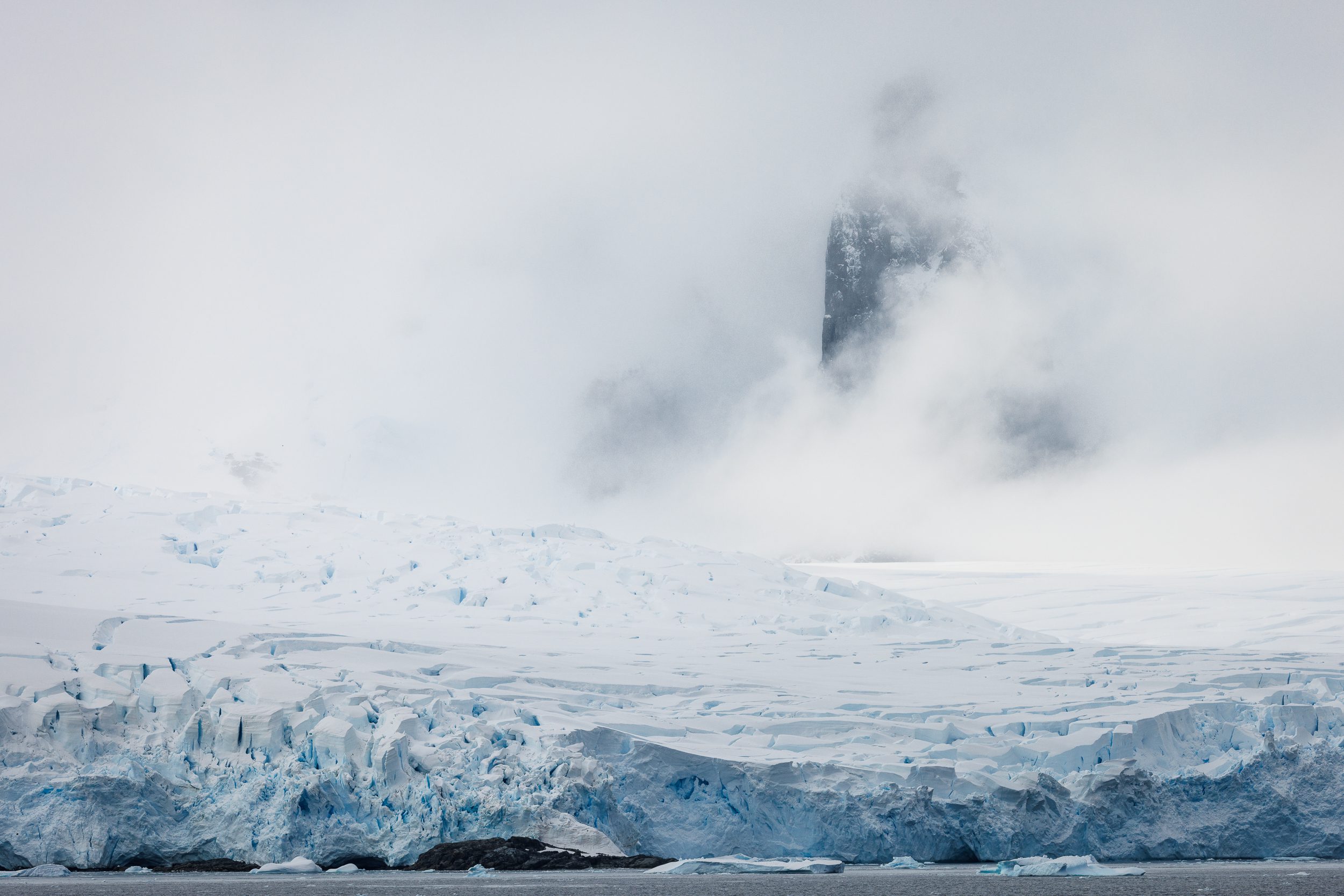 After having been spoiled the first morning, everyone was hoping for beautiful light during the crossing of the Lemaire Channel. Instead, we got low-hanging clouds and moody conditions. Over the years, I have learned not to set myself up for disappointment when it comes to photography. I woke up with zero expectations, thinking that we will get what we will get. You can’t control the weather, so it’s best to make the most out of what you get. Once I got onto the deck, I embraced the atmosphere. It had snowed, everything was dead silent and the low clouds made everything feel extremely atmospheric.