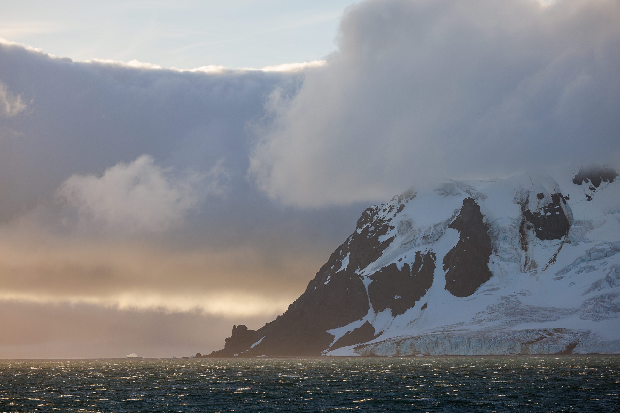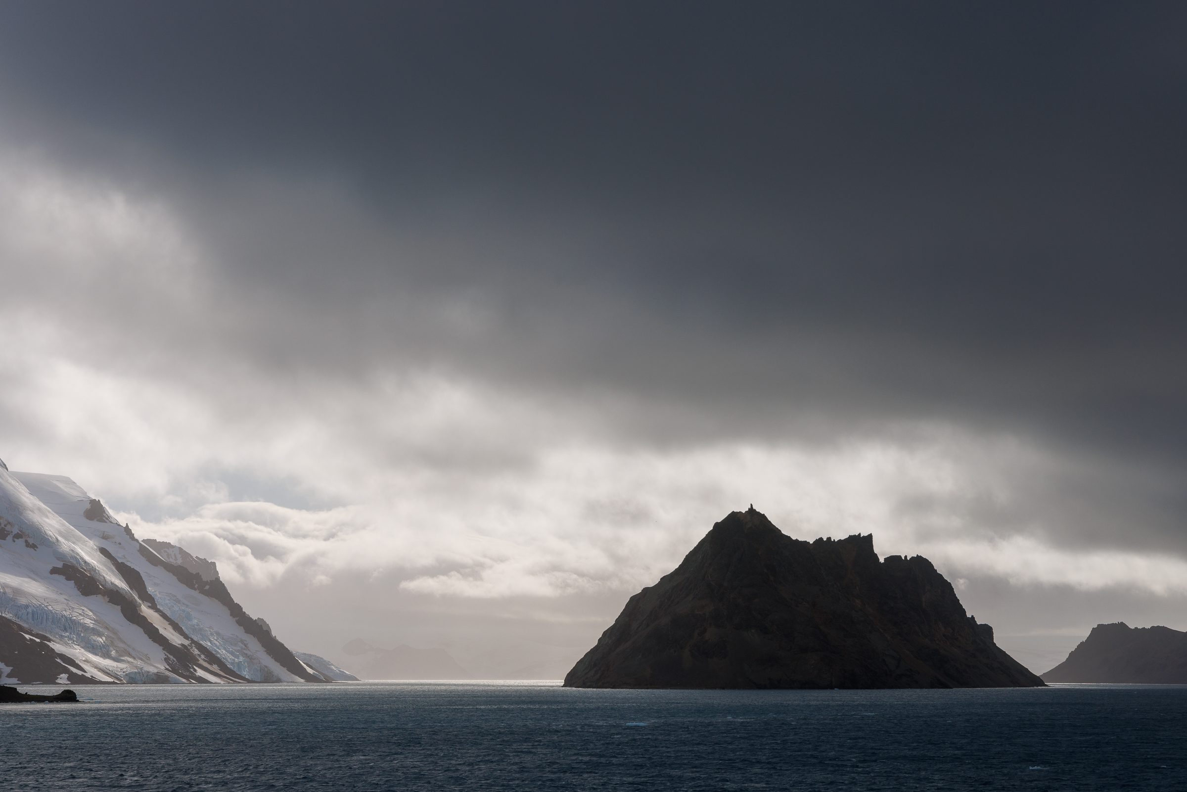 After leaving this incredible place behind, we arrived back on the Sylvia Earle. As soon as I got back to my cabin, I stepped out on the balcony. The low-hanging clouds had begun to part and stunning light was making its way through, illuminating the impressive landscapes around us.