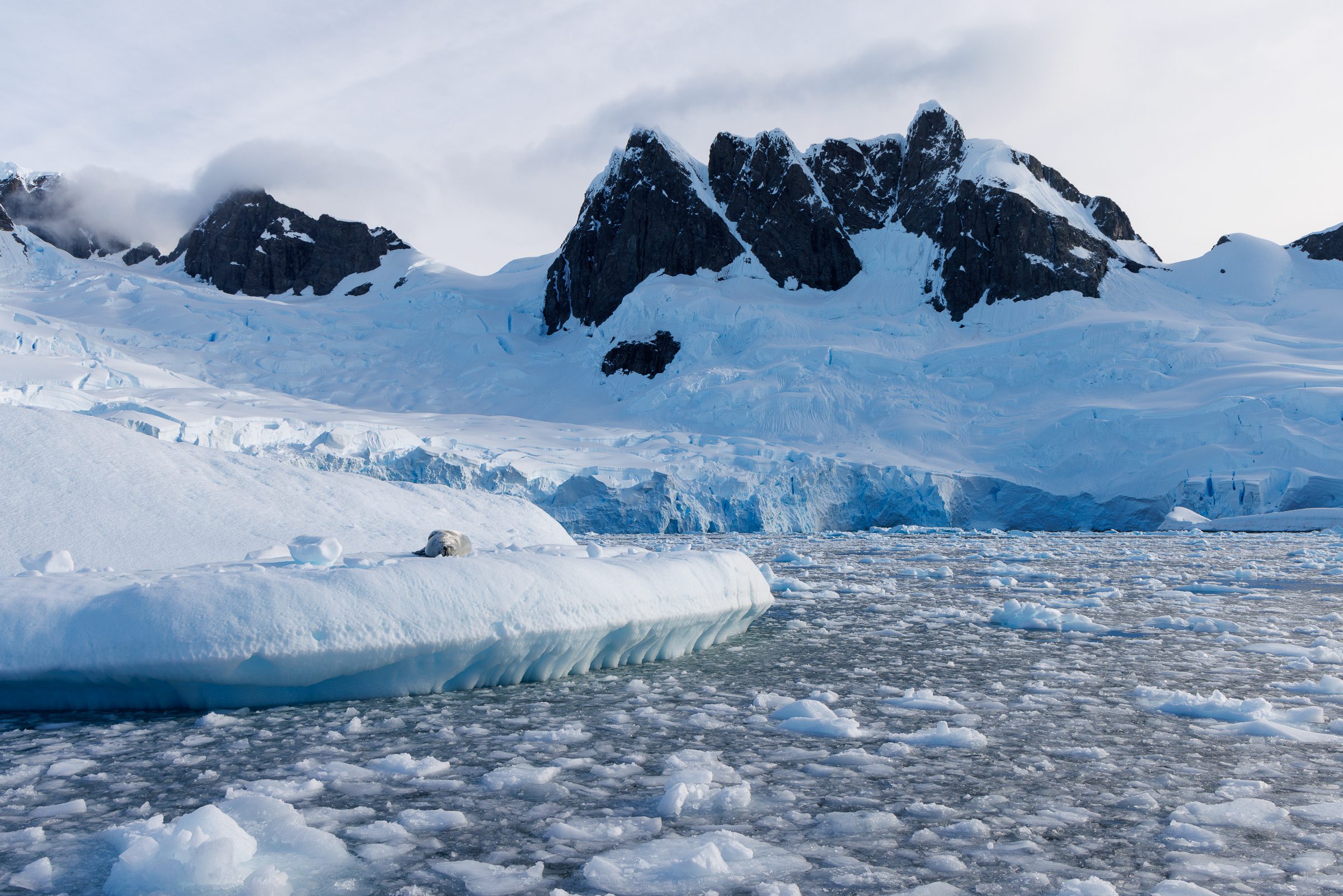 Shortly after, we headed down to the mudroom to board the zodiacs. We first headed closer to the science station that was on the shoreline, called Brown Station. As we made our approach, we quickly spotted two Weddell seals nearby. As if it was orchestrated, one of the seals sat up and made this incredible pose the second we got close enough to take photographs. “Next!” was the first thing I said when we got that shot. I just knew we wouldn’t get a better shot than that. I didn’t even know how much better that afternoon would become…