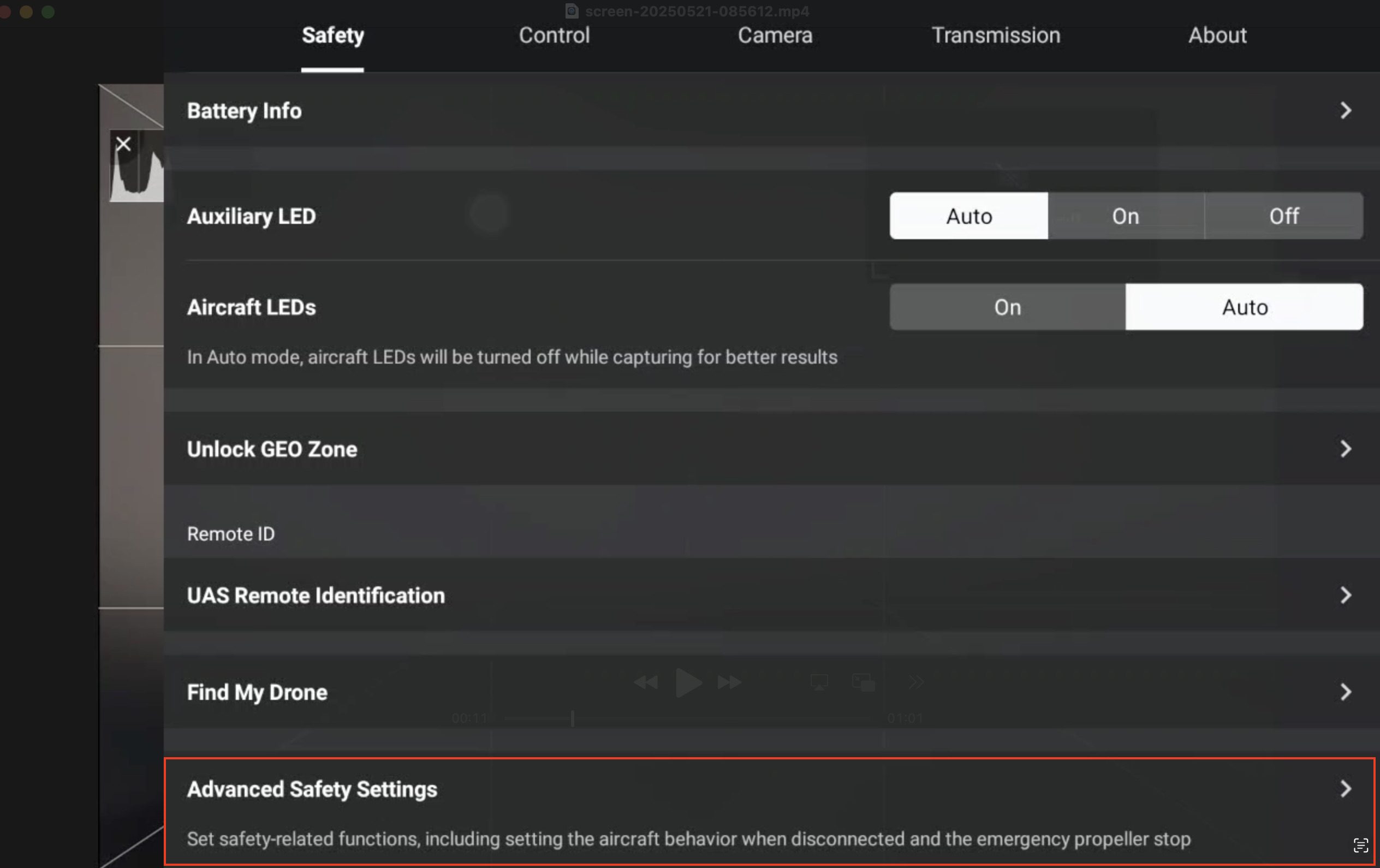 • Go to Safety and scroll down to Advanced Safety Settings.