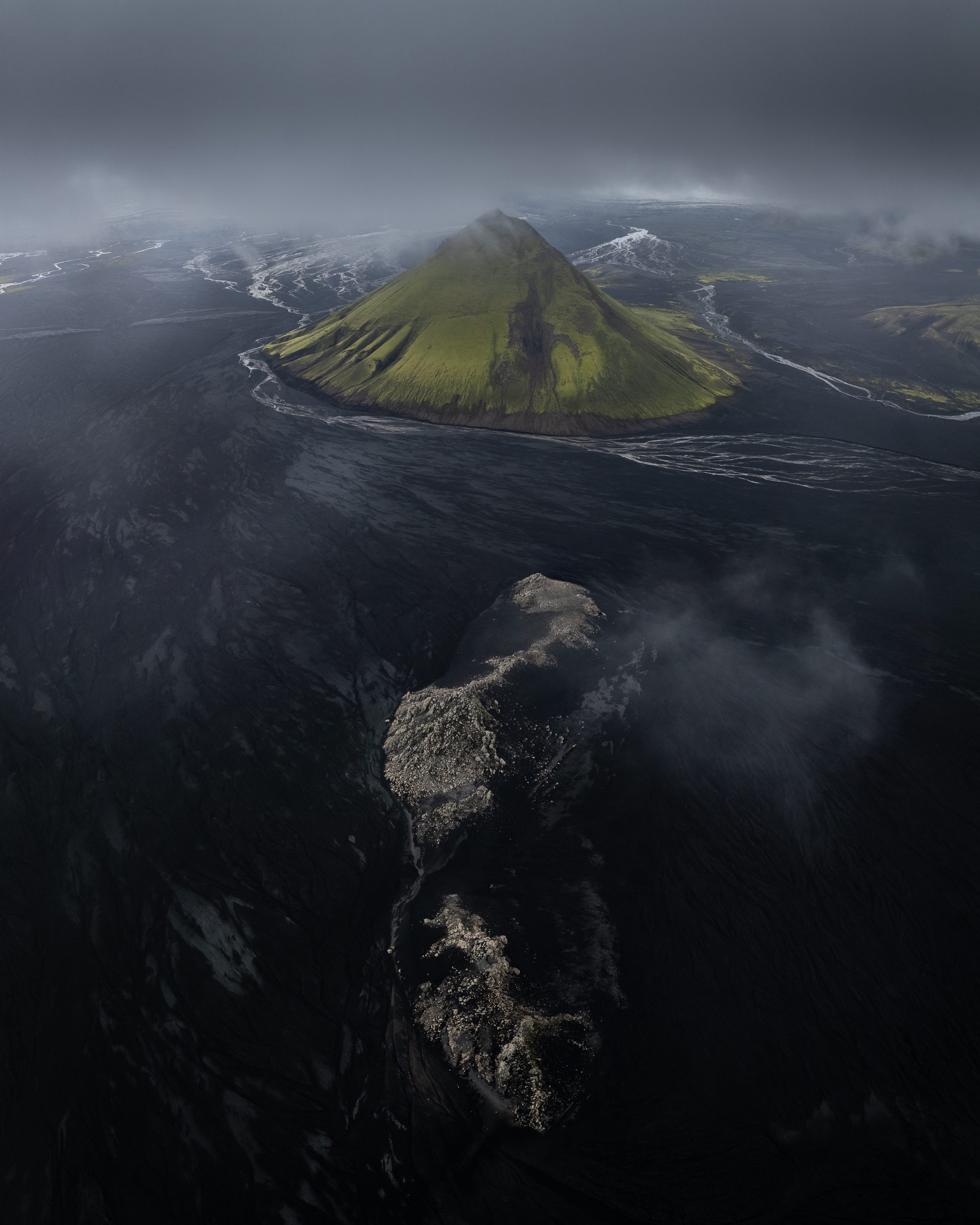 During my first flight with the DJI Mavic 4 Pro, I decided to photograph some of the most colorful river braids that can be found in Iceland. Thanks to the extremely hot weather, low clouds had engulfed the area which made for the perfect framing for my abstract images.