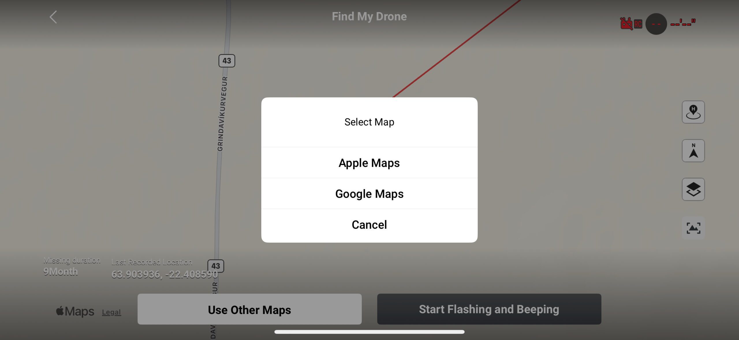 - If you are using a smartphone connected to your controller, you can press ‘Use Other Maps’ to open the coordinates in another navigation application such as Apple Maps or Google Maps to make your search easier.