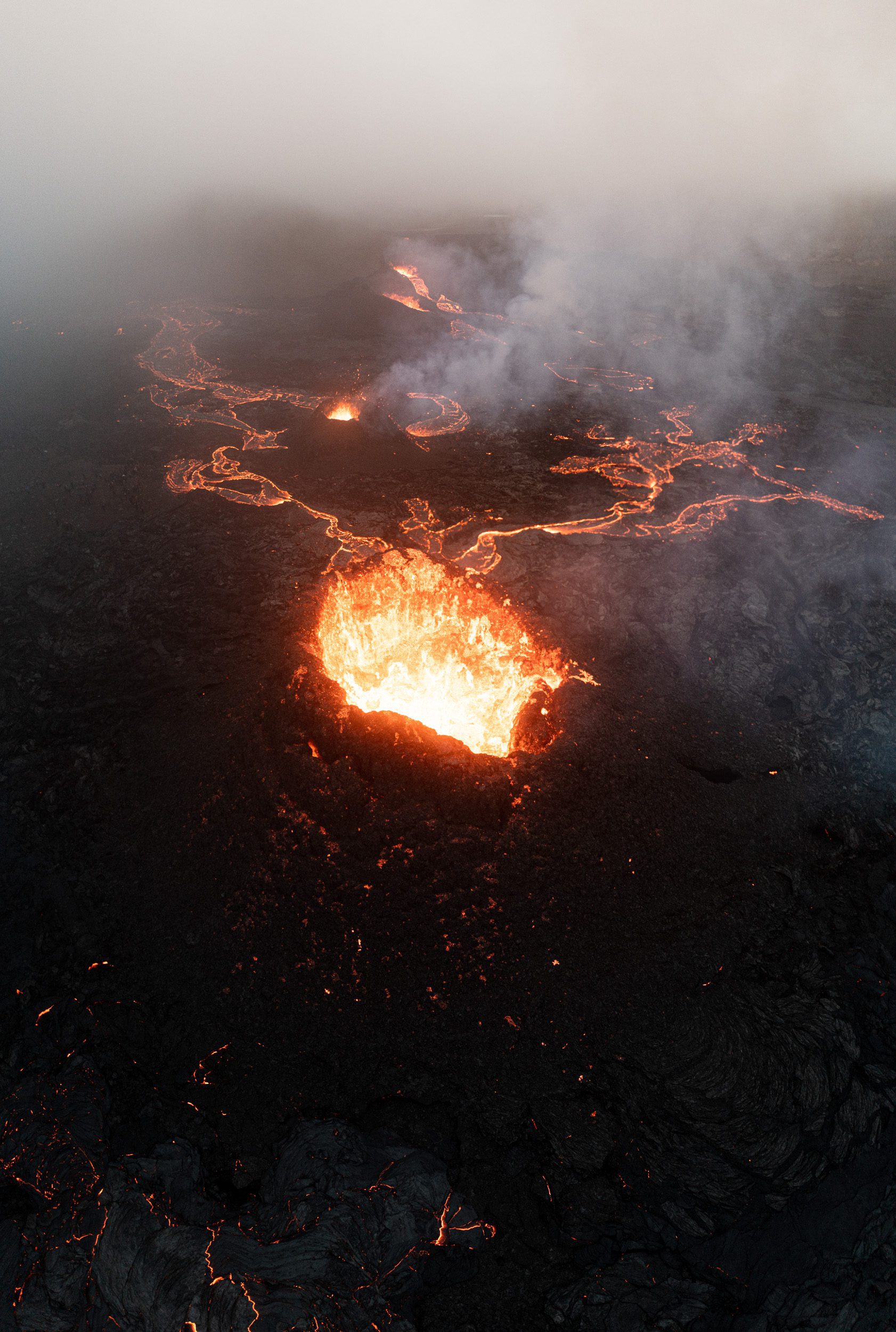 After all the excitement of the initial visit after the new fissure opened up, I started going through my shots in more detail and I realised I hadn’t really bothered flying my drone much. Mostly because I enjoyed being there on the ground next to the action. The next few visits, I spent a lot of time with my drone: capturing the craters up-close, focusing on the patterns and smaller details that were only visible from the air. It’s incredible what these tiny flying cameras can show you – especially in an otherworldly environment such as this one.