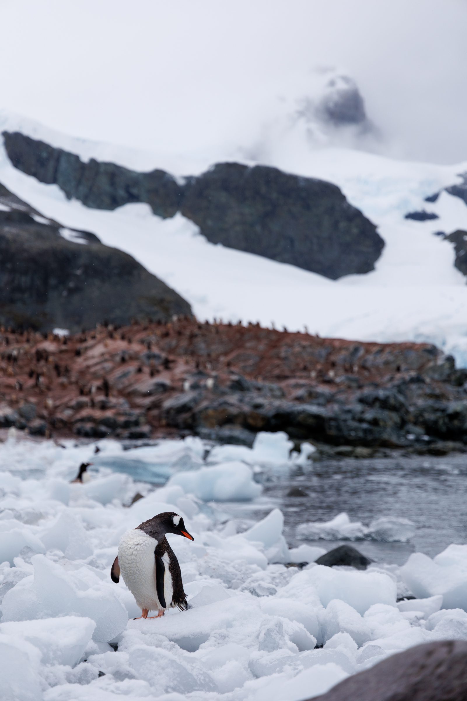 There was so much to photograph in this location! Whether you were into the grander landscape shot or the intimite portrait shot, there was something to be had for everyone and the surroundings really added a lot to it. One of my favourite sections was the northern area where the gentoo’s jumped into the water between blocks of glacial ice stranded on the beach. But also, and I probably wasted too much time on it, it was possible to photograph gentoo penguins swimming underwater along the shoreline (thanks again to Max for borrowing me his polariser as I left mine on the ship that morning).