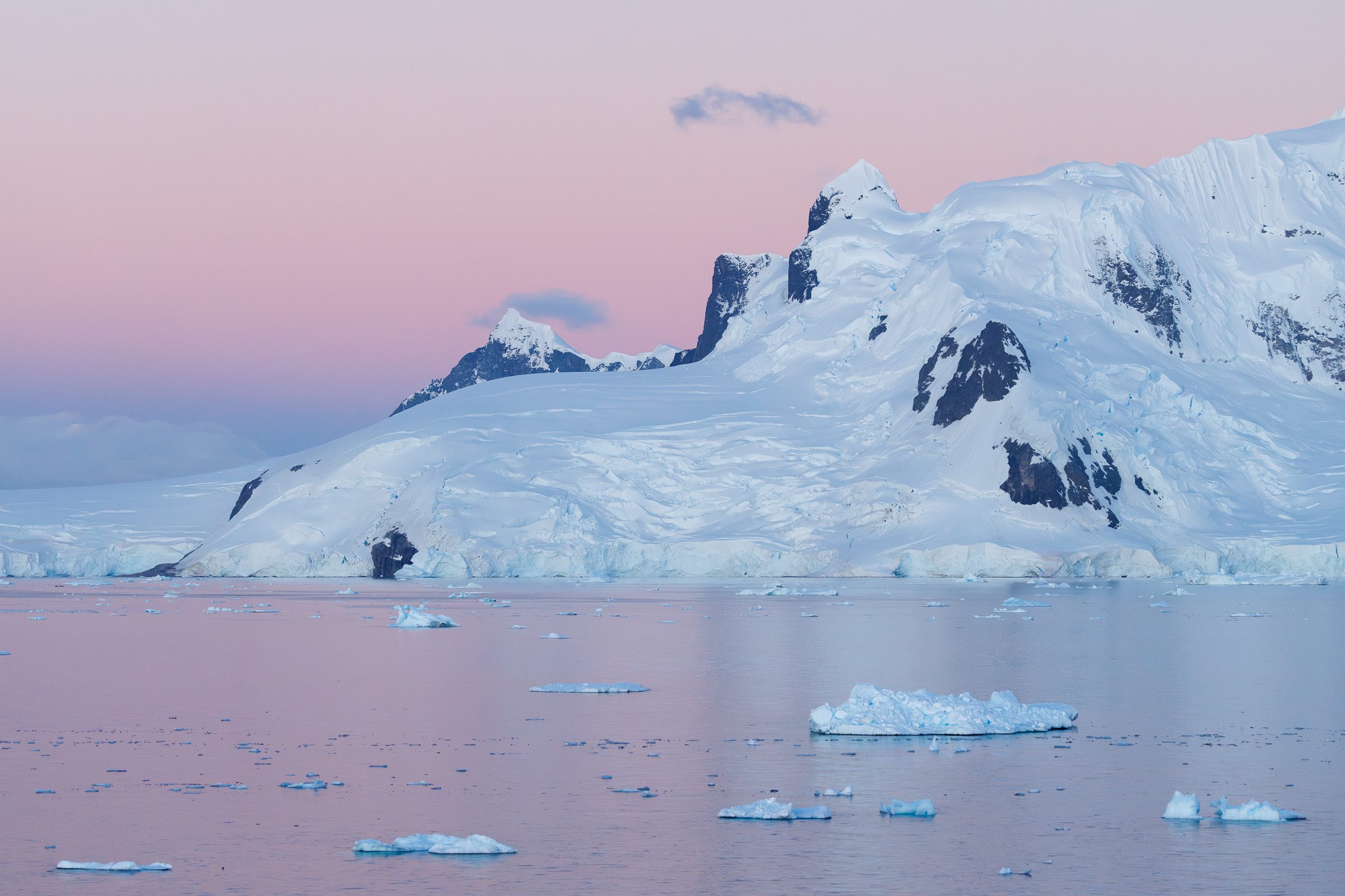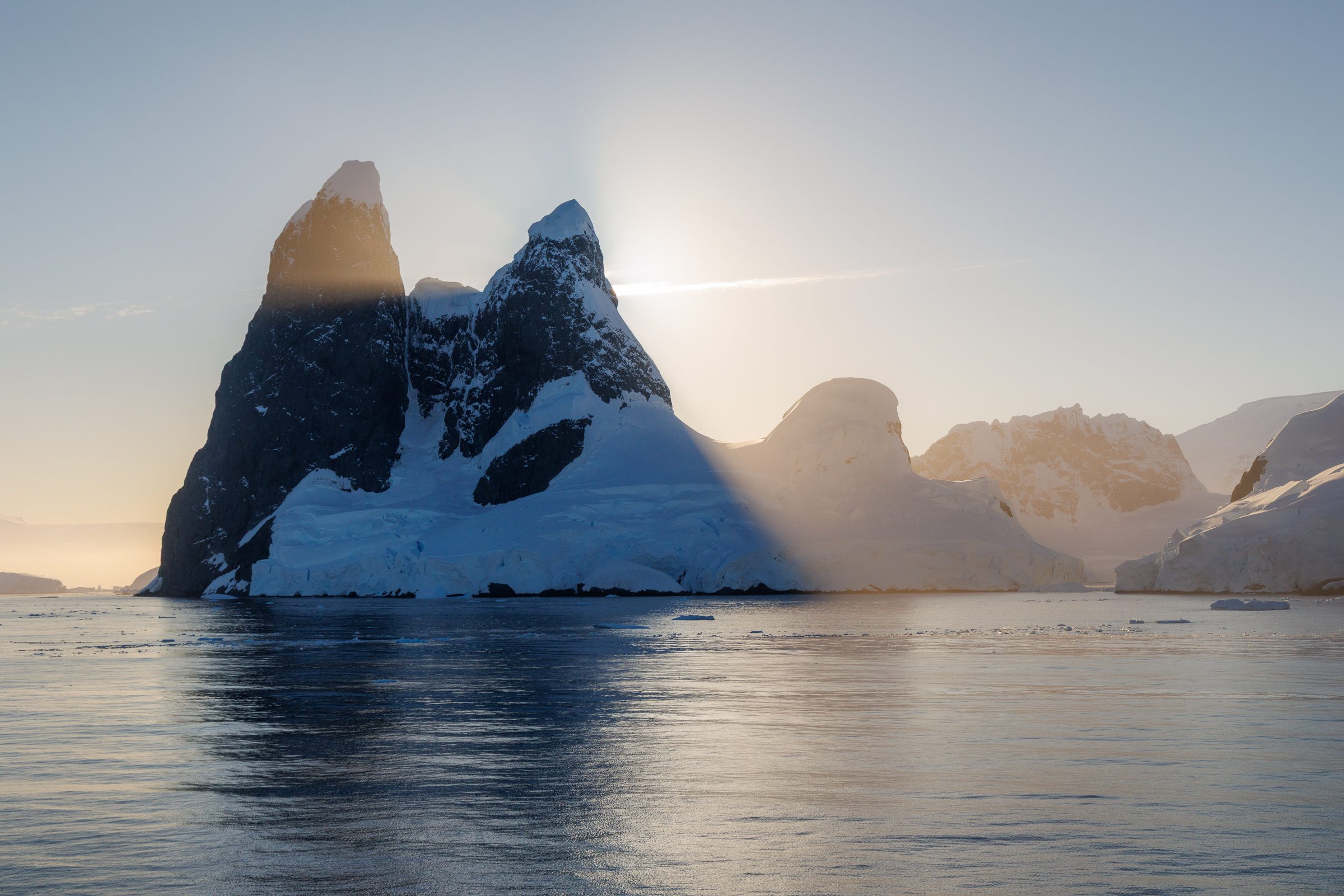 One early morning, we sailed into the Lemaire Channel and were treated to some incredible light. Even though there was not a puff of clouds to be seen, we still got an amazing show.