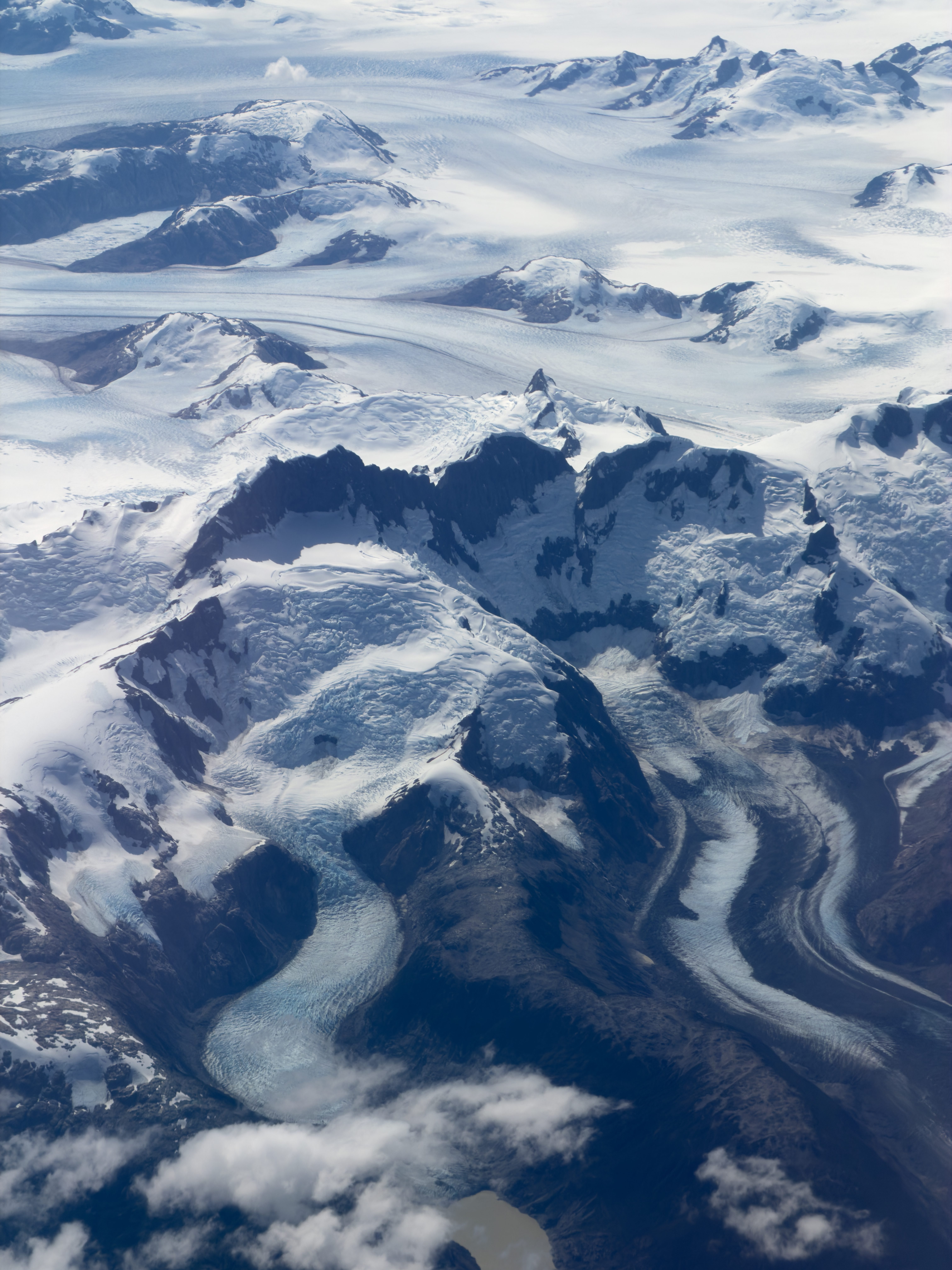The flight from Santiago in Chile to Punta Arenas is incredibly scenic if you are lucky with the cloud cover. This is just one of many phone snaps I took during this flight, through a dirty airplane window, looking down upon the incredible Patagonian landscape.