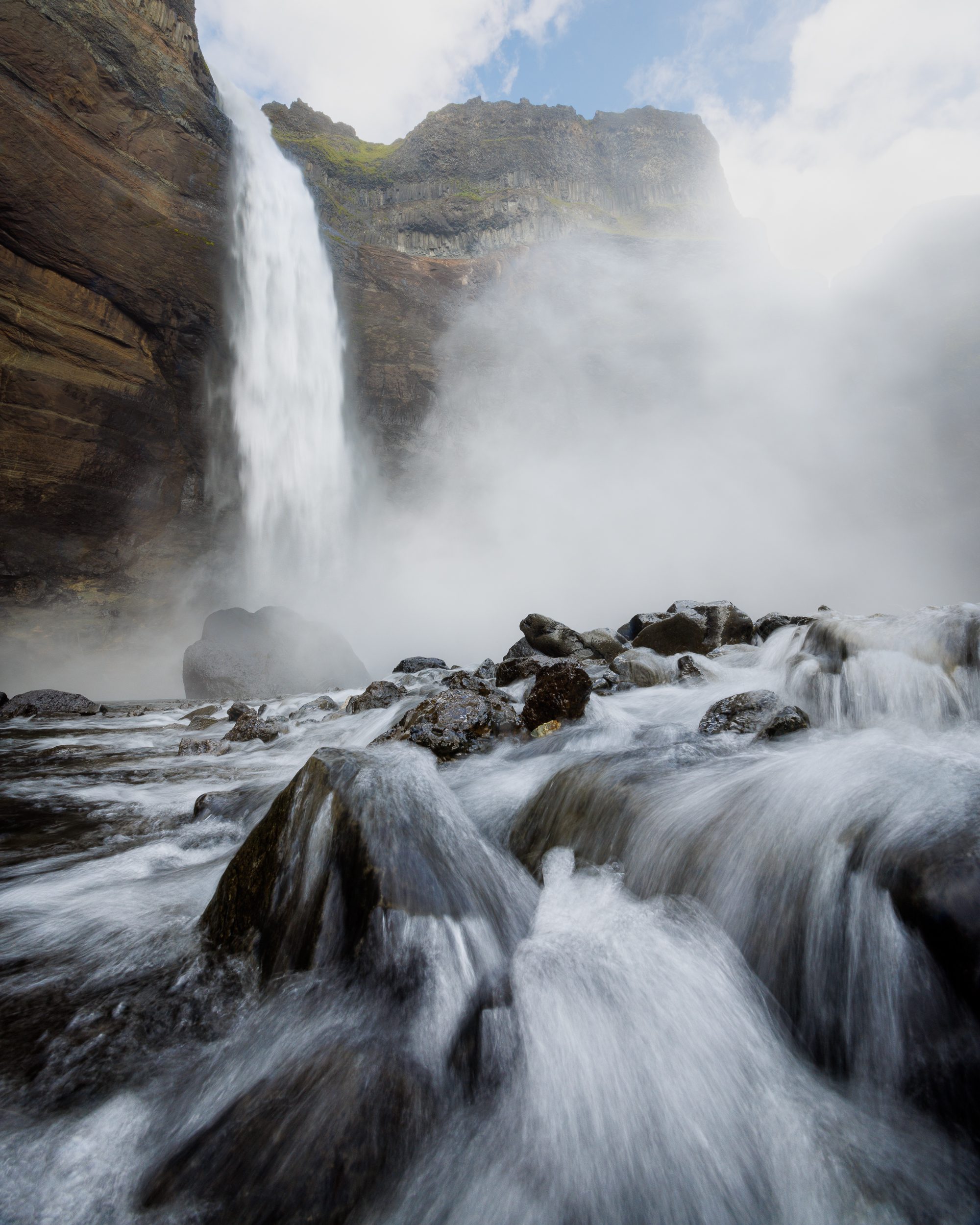 For the first time in a long time, the wind pushed the spray of Háifoss away from the little river right in front of it. This allowed me to go very, very close and find this composition. I really like the atmosphere and drama in this particular photograph.