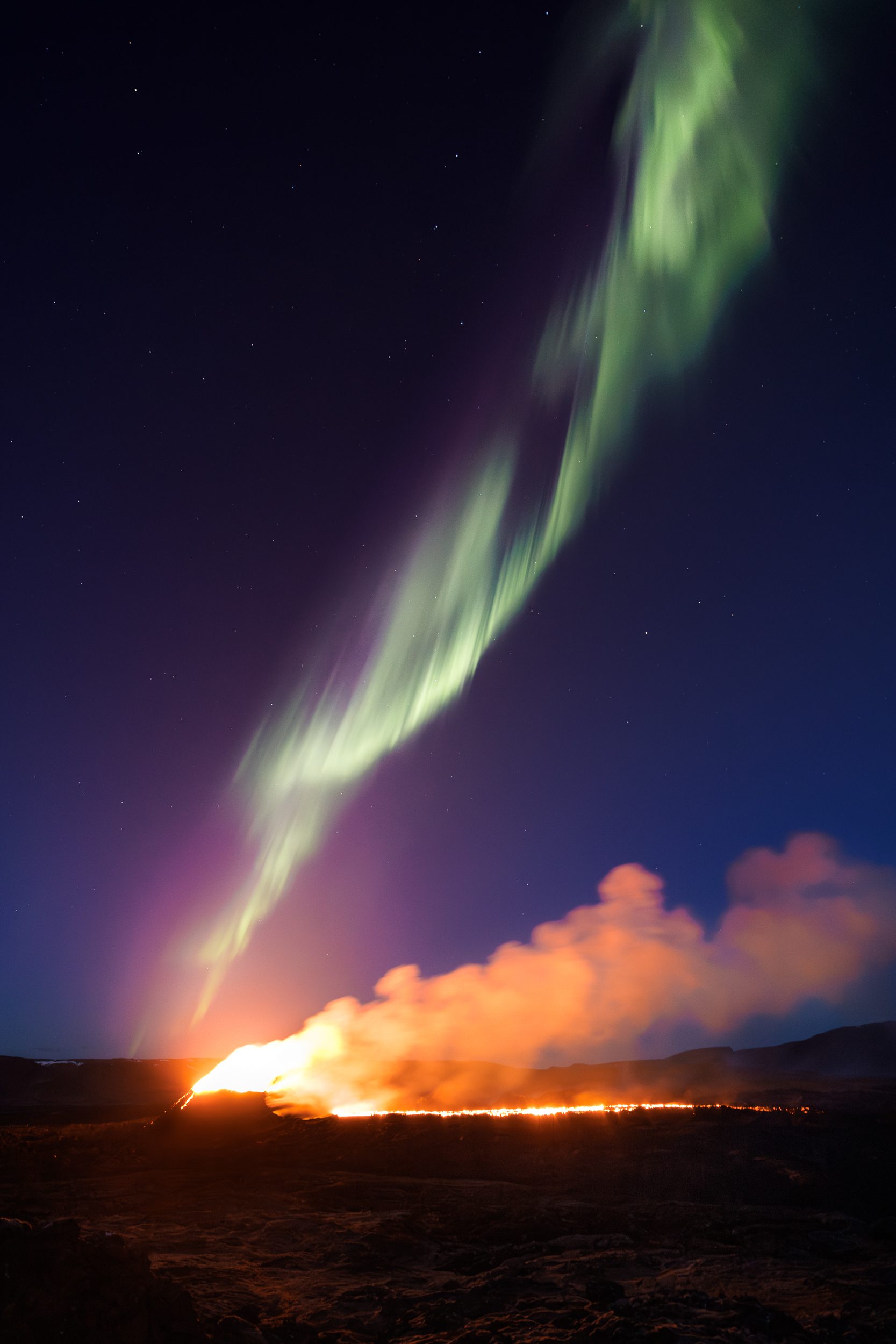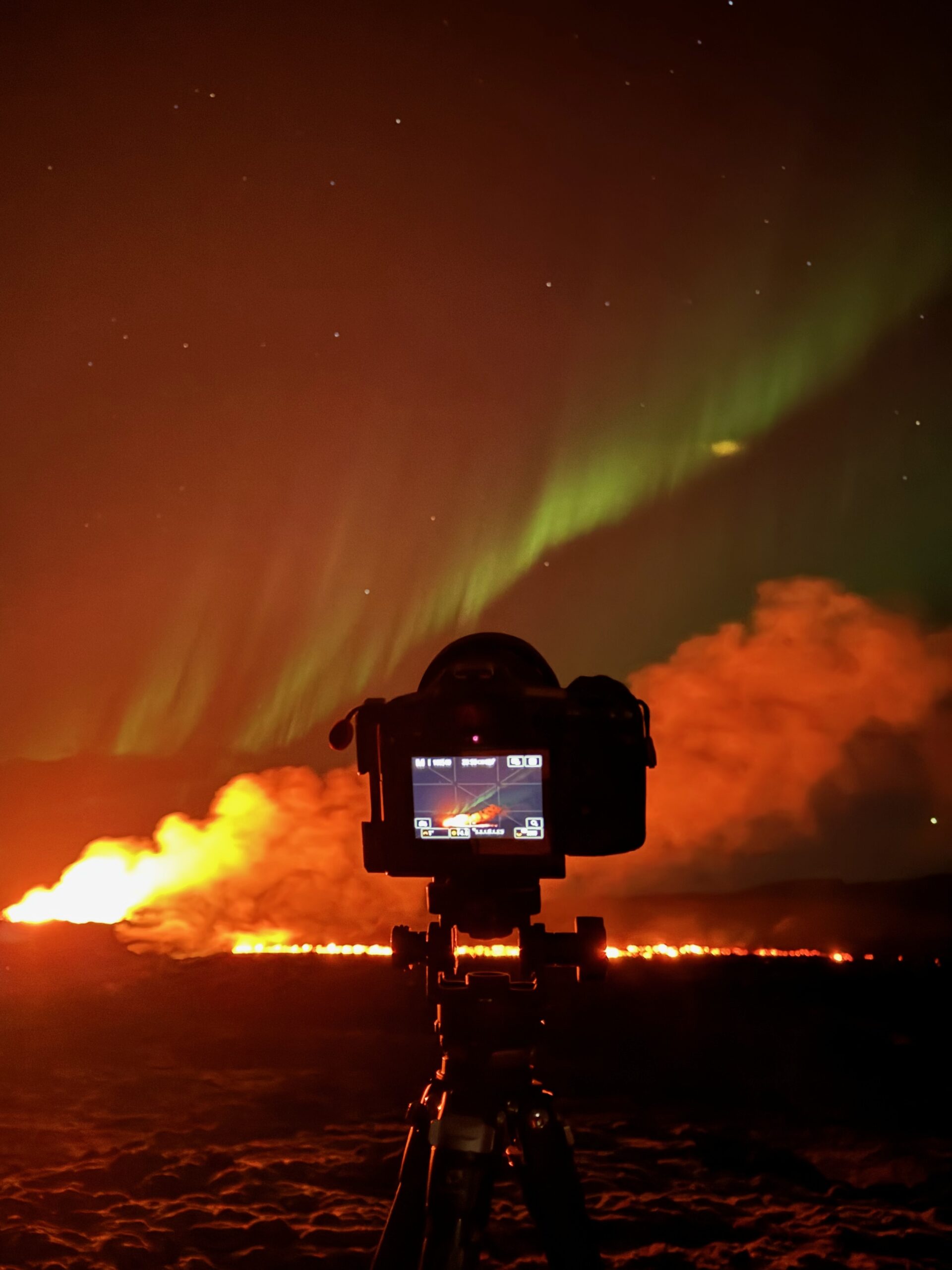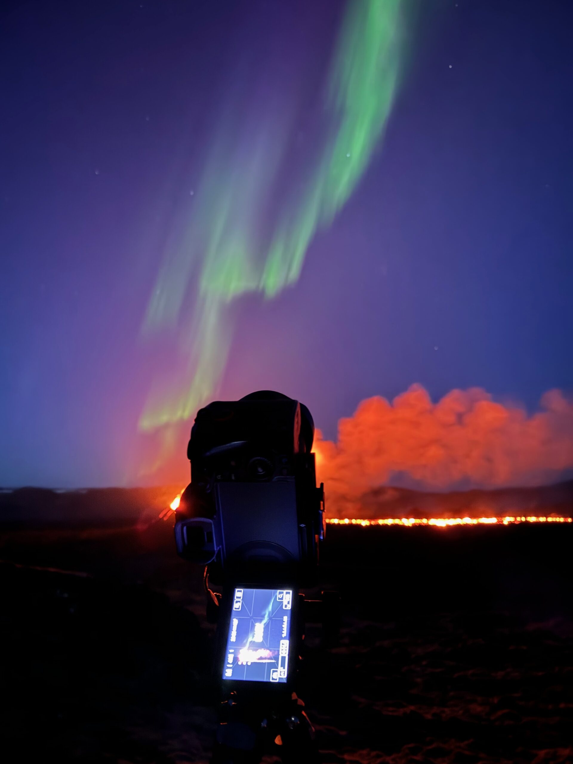In 2021, I captured this unique photograph the aurora borealis above the then-ongoing eruption.